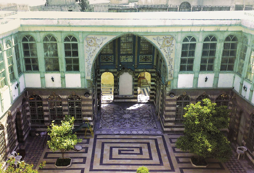 تتميز مدينة دمشق القديمة بالبيوت السكنية المميزة بأفنيتها الواسعة المزروعة بالأشجار والأزهار وأبنيتها الضخمة ذات العناصر الثرية المتعددة من حيث تصميماتها ووظائفها المتلائمة مع ظروف المناخ والبيئة في الشرق العربي بينما ظهرت هذه العمائر بواجهة خارجية بسيطة قليلة الفتحات لتجنب جشع الولاة ومصادرتهم للأملاك في أكثر من عصر مر على هذه المدينة القديمة