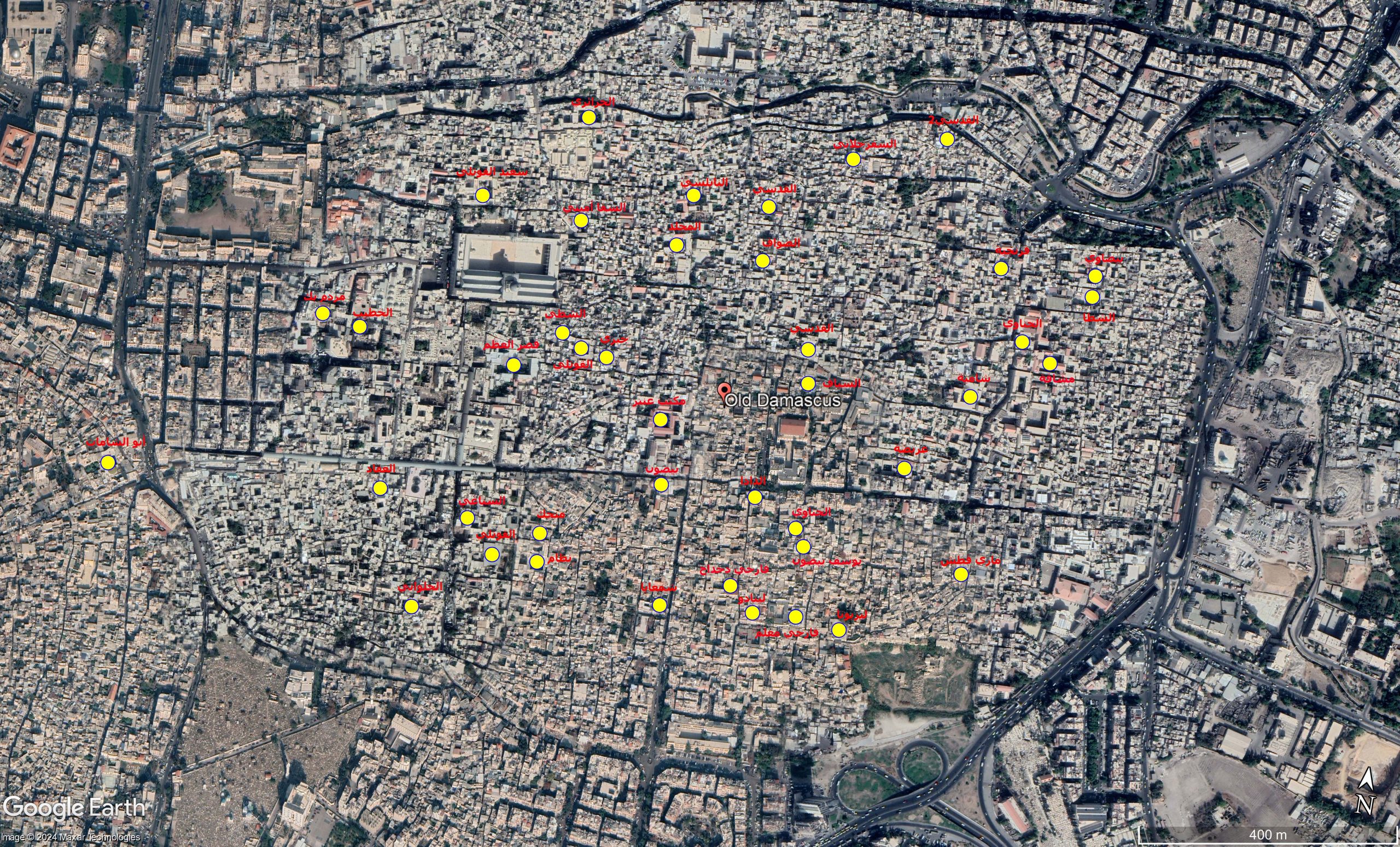 خرائط ومسارات AllGallery Item google earth locations AllGallery Item Barouque مسار زيارة لبيوت تضم عناصر معمارية وفنية تنتمي لفترة الباروك AllGallery Item palacesمسار زيارة للقصور الدمشقية AllGallery Item long pathمسار زيارة طويل